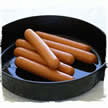 Cellulose, usually from cotton linters, is similarly processed into a paste and extruded into clear, tough casings They are used primarily in the manufacture of industrially cooked sausages (frankfurters, Vienna sausages, hot-dogs, etc.). They also are shirred for easier use and can be treated with dye to make "red hots". The casing is peeled off after cooking, resulting in "skinless" franks. This type is also permeable to smoke and water vapor. They can be flat or shirred, depending on application, and can be pretreated with smoke, caramel color, or other surface treatments.
